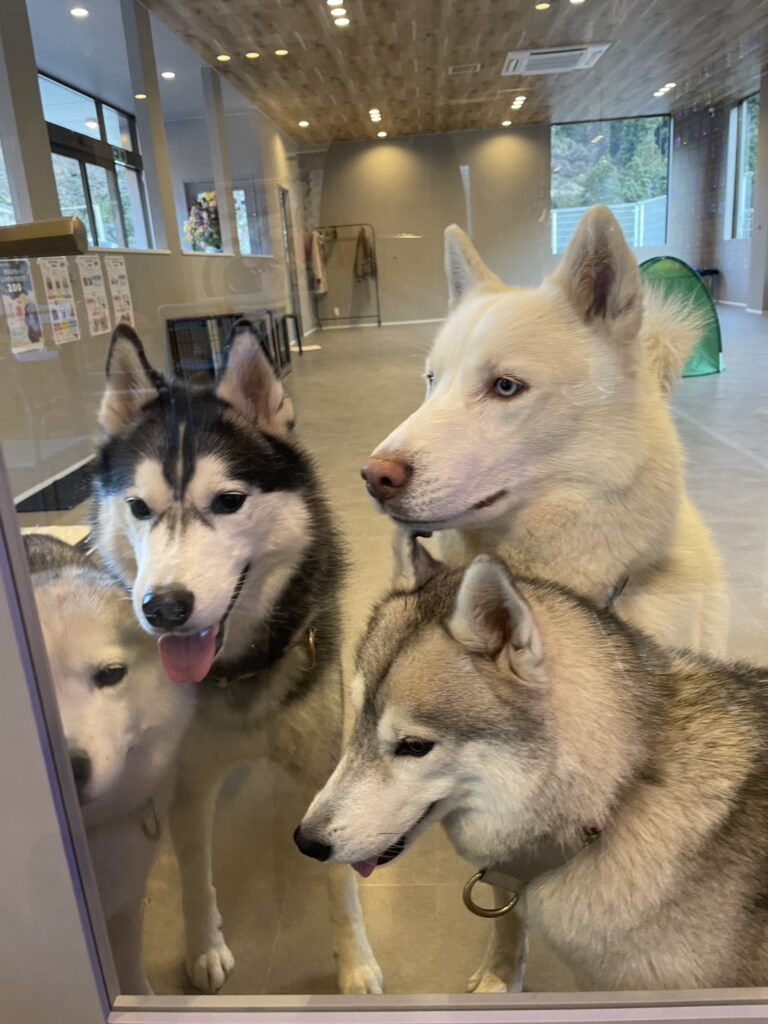 先日はシベリアンハスキーちゃん4匹が遊びにくれました。
