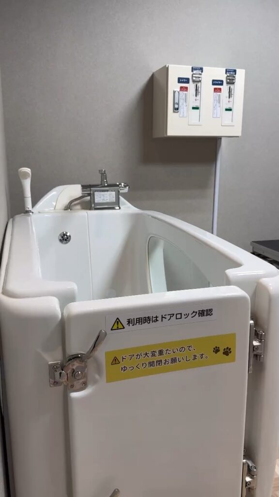 微細な泡で汚れを落とすマイクロバブルバスと、犬専用のシャンプー・ドライスペースをご用意しています。